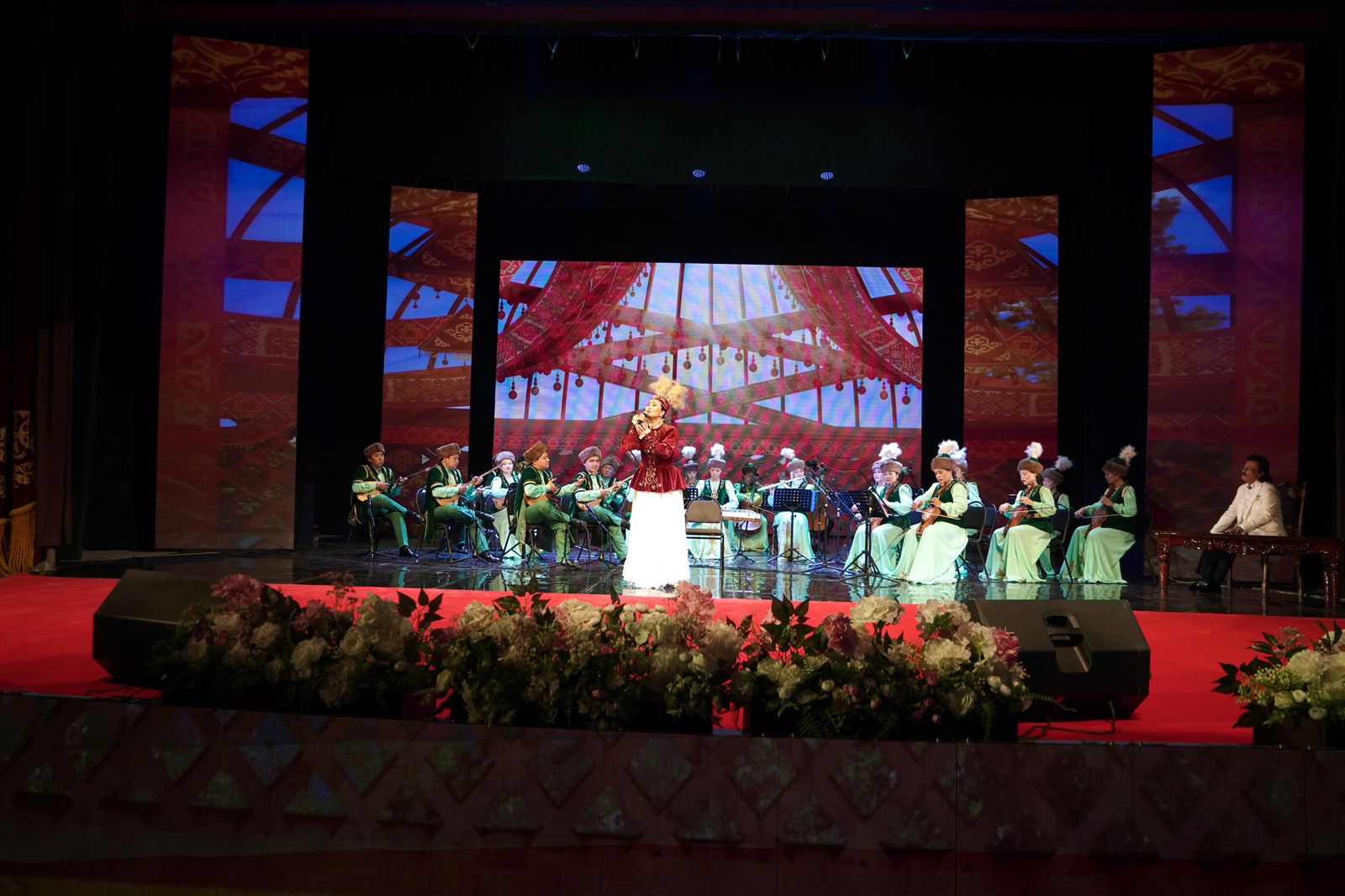 «Ақ жауын» мемлекеттік камералық оркестрі дәстүрлі саз өнері мен заманауи классиканы шебер ұштастырып, Абай шығармаларына арналған музыкалық интерпретацияларды жоғары деңгейде ұсынды. Оркестр орындауындағы әрбір шығарма көрерменге терең ой салып, әсерлі әуендерімен тыңдаушының жүрегінде ерекше із қалдырды.
